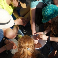 Die roten, rosanen und grauen Kinderforschenden waren währenddessen höchst produktiv bei ihrem Thementag zugange. Auf dem Zeltplatz wurden also fleißig Stressbälle gebastelt, Keramik zersschmissen und Grafitti gesprayed.